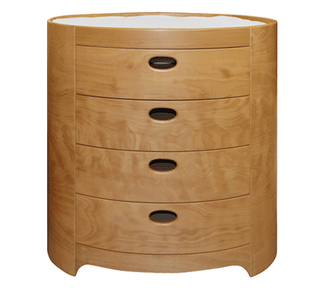 Oval shaped to fit any area, and constructed with 4 large draws to store all your babies' requirements. Due to its unique design, it also evolves into a modern chest of draws to be used anywhere in the house, by simply removing the generous change mat on top.